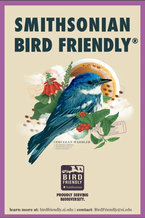 The Smithsonian Bird Friendly® certification is the environmental gold standard in sustainable food production for coffee and cocoa. Smithsonian scientists developed the Bird Friendly certification for coffee in the late 1990s to conserve habitat and protect migratory songbirds. Bird Friendly habitat ensures a mix of foliage cover, tree height and biodiversity that creates quality habitat for birds and other wildlife. Learn about how to eat, drink and live Bird Friendly!